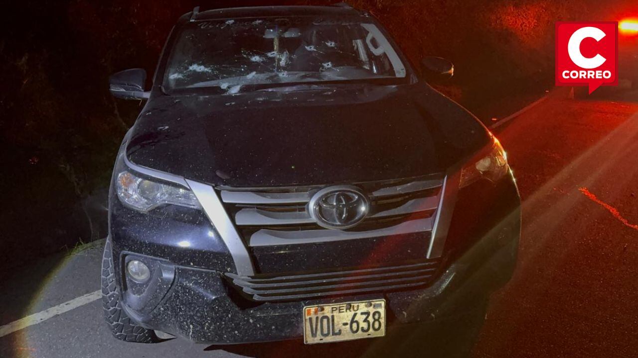Luego de ser alertados sobre este hecho, los policías de la comisaría de Macusani se constituyeron en el lugar y divisaron el vehículo de placa V0L-638 empotrado en la cuneta y presentaba orificios de bala.
