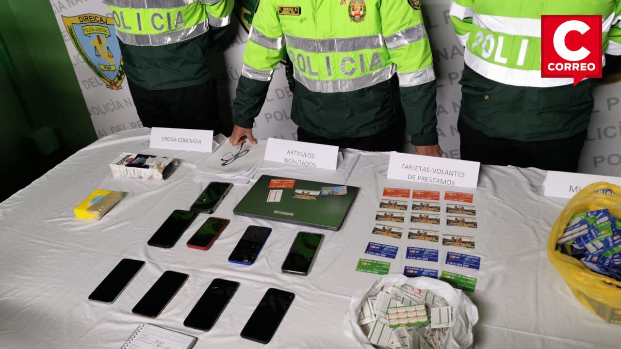 Durante el operativo, en la que participaron gran cantidad de policías, se encontró cientos de tarjetas publicitarios de préstamo de dinero, 30 motos lineales, 10 celulares, dinero en efectivo, envoltorio de droga y otros objetos.