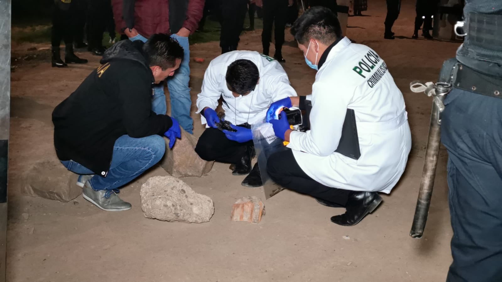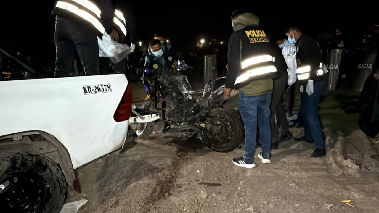 Los policías de sección especializada y el fiscal de turno de Juliaca llegaron al lugar y realizaron las diligencias de levantamiento del cadáver del sujeto que aún no fue identificado. A un costado hallaron la siniestrada motocicleta y un revólver abastecido de municiones.
