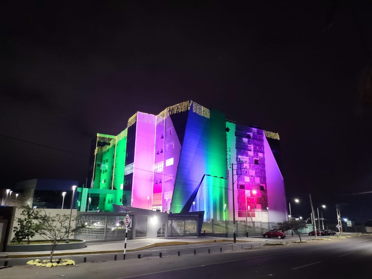 El perímetro del edificio se iluminará con luces doradas que asemejarán al desierto costero y luces azules para representar a los principales ríos de las diferentes cuencas de la región de Tacna.