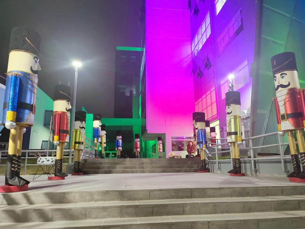 Además de la fachada iluminada con motivos navideños regionales, Sánchez Vildoso señaló que la población en general podrá apreciar y tomarse fotos con la guardia dorada de cascanueces y el león Prince instalados al ingreso de la sede institucional. Este último tiene un sensor, y cada vez que una persona se acerca abre la boca y empieza a rugir.