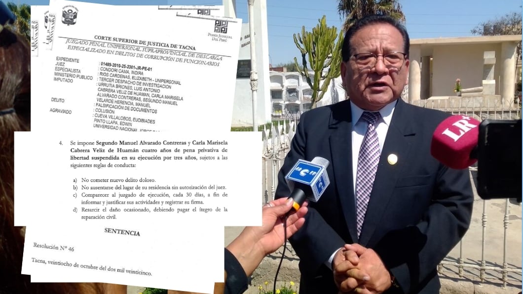 El Juzgado Penal Unipersonal Supraprovincial de Descarga Especializado en Delitos de Corrupción de Funcionarios, que despacha la juez Indira Condori Cama, en la sentencia emitida mediante Resolución N° 46 del 28 de octubre de 2025 a Alvarado Contreras le impone las siguientes reglas de conducta: no cometer nuevo delito doloso, no ausentarse del lugar de su residencia sin autorización del juez, comparecer al juzgado de ejecución cada 30 días a fin de informar y justificar sus actividades y registrar su firma, y resarcir el daño ocasionado, debiendo pagar el íntegro de la reparación civil.