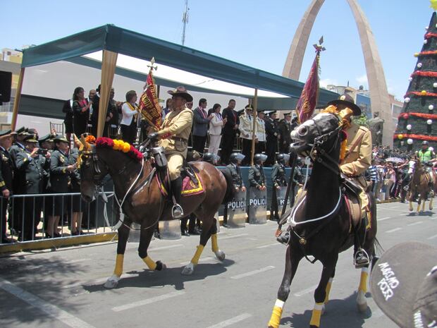 La gallardía de los agentes se ganó cientos de aplausos de la ciudadanía apostada en la calle San Martín. (Foto: Adrian Apaza)