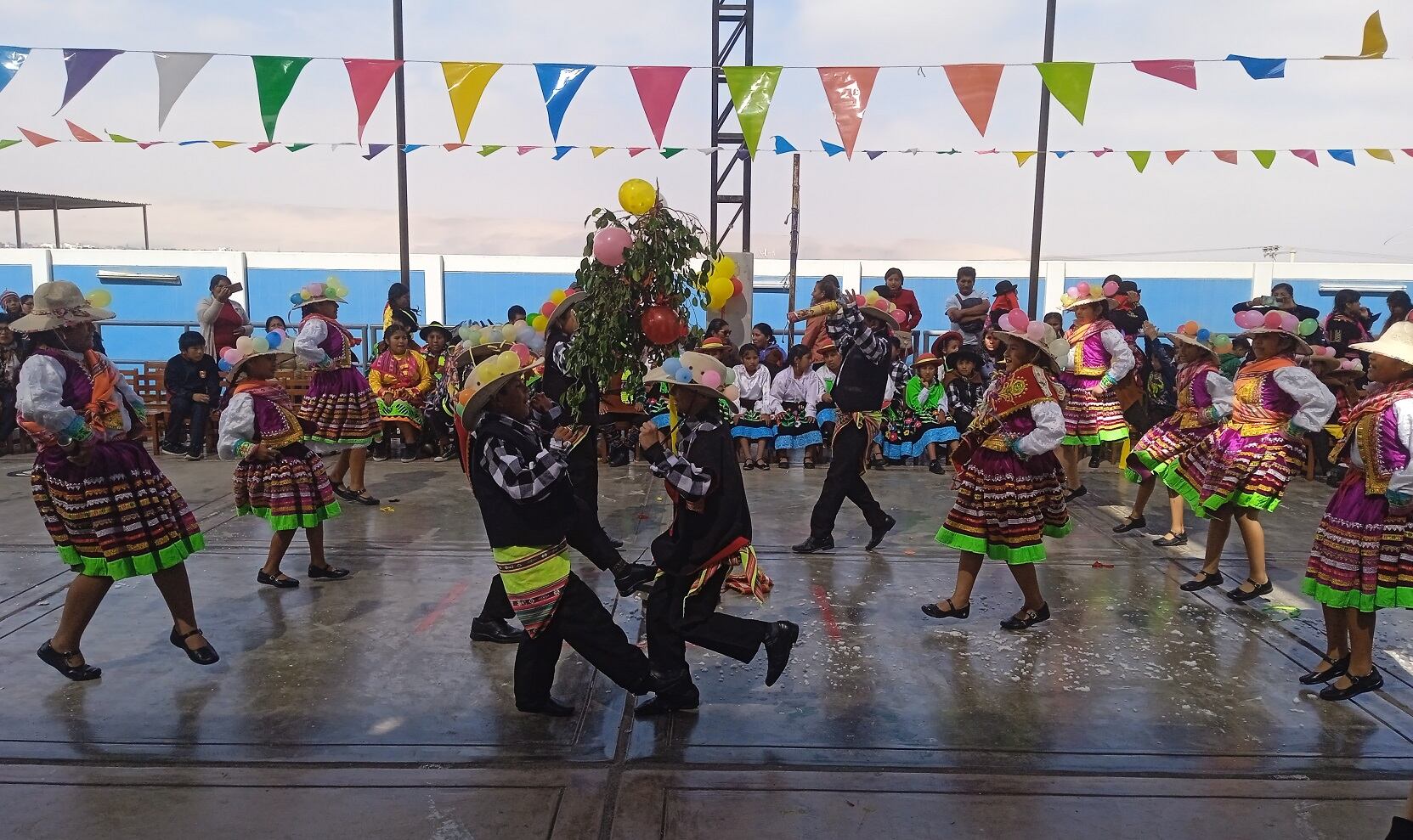 Los niños del nivel inicial bailaron el Huaylas, una de las danzas más representativas del folclore peruano, declarada patrimonio cultural de la Nación el año 2005; representa el enamoramiento y cortejo de la pareja y su baile es muy alegre. Las otras danzas presentadas son: Tusuy Kusum (primer grado), Carnaval de Cajamarca (segundo grado), Entrada de San Miguel (tercer grado), Bandera Peruana (cuarto grado), Carnaval de Andahua (quinto grado), Balseros de Wiñay Marca y Carnaval de Ayacucho (sexto grado).