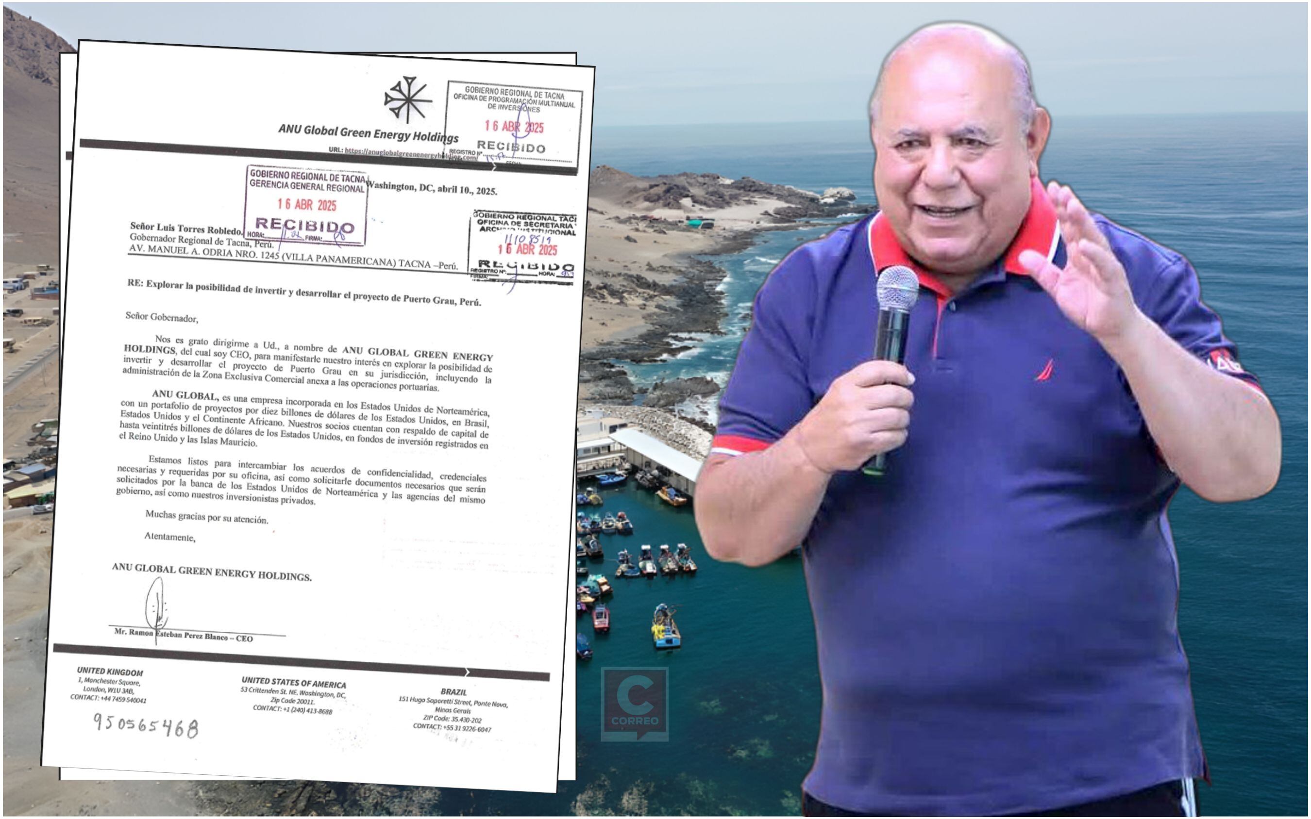 Una nueva carta de interés para desarrollar el proyecto del puerto Almirante Miguel Grau recibió en los últimos días el Gobierno Regional de Tacna, representado por su gobernador regional Luis Torres Robledo.