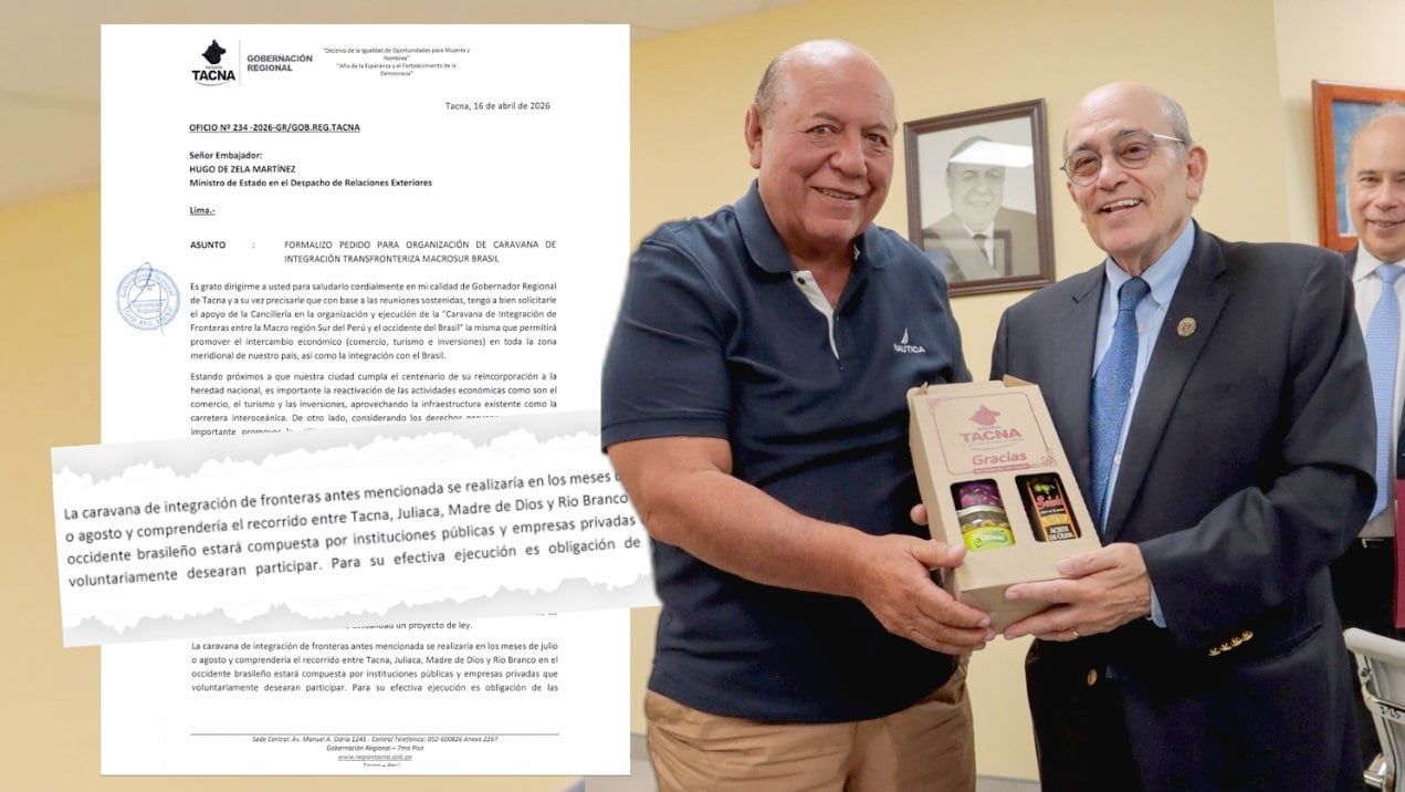El Gobierno Regional de Tacna formalizó hoy el pedido de apoyo al Ministerio de Relaciones Exteriores para la organización y realización de la “I Caravana de Integración Transfronteriza Macro Sur con los estados del este de Brasil”. El acto se concretó mediante el oficio N° 234-2026-GR/GOB.REG.TAC. de fecha 16 de abril de 2026 que lleva la firma del gobernador regional Luis Torres Robledo.