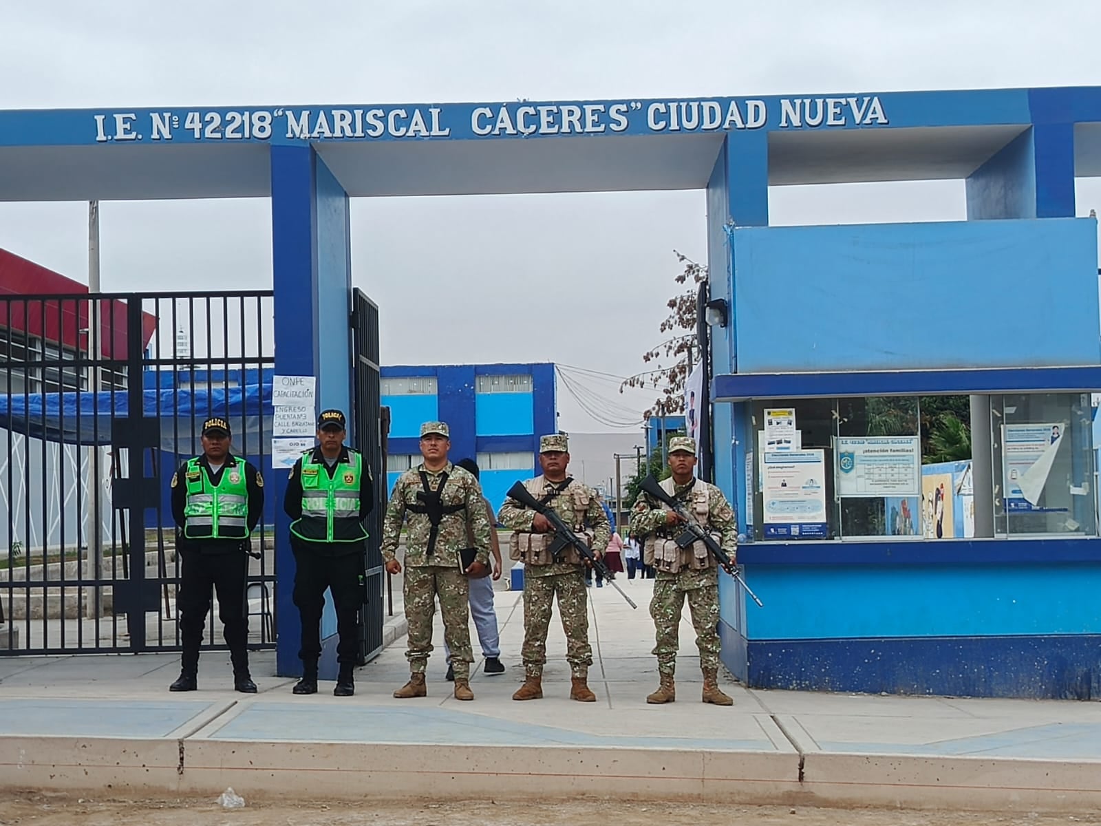 En un recorrido por el cono norte se pudo constatar la presencia mayoritaria de personas en las inmediaciones de la I.E. Mariscal Cáceres, donde se han instalado 27 mesas de votación. Ese centro de votación tiene su puerta principal de ingreso por la avenida Internacional, vía que desde hace unos cuatro meses está en proceso de remodelación, no cuenta con pista y el tránsito vehicular es restringido.