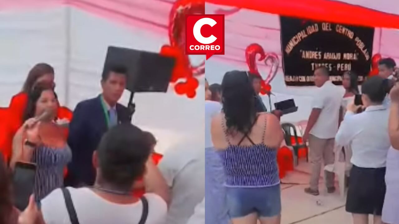 En el video se observa cuando el maestro de ceremonias intenta mediar la discusión. Luego de que la mujer expresara su reclamo, le indicó que tenía que continuar con la ceremonia.
