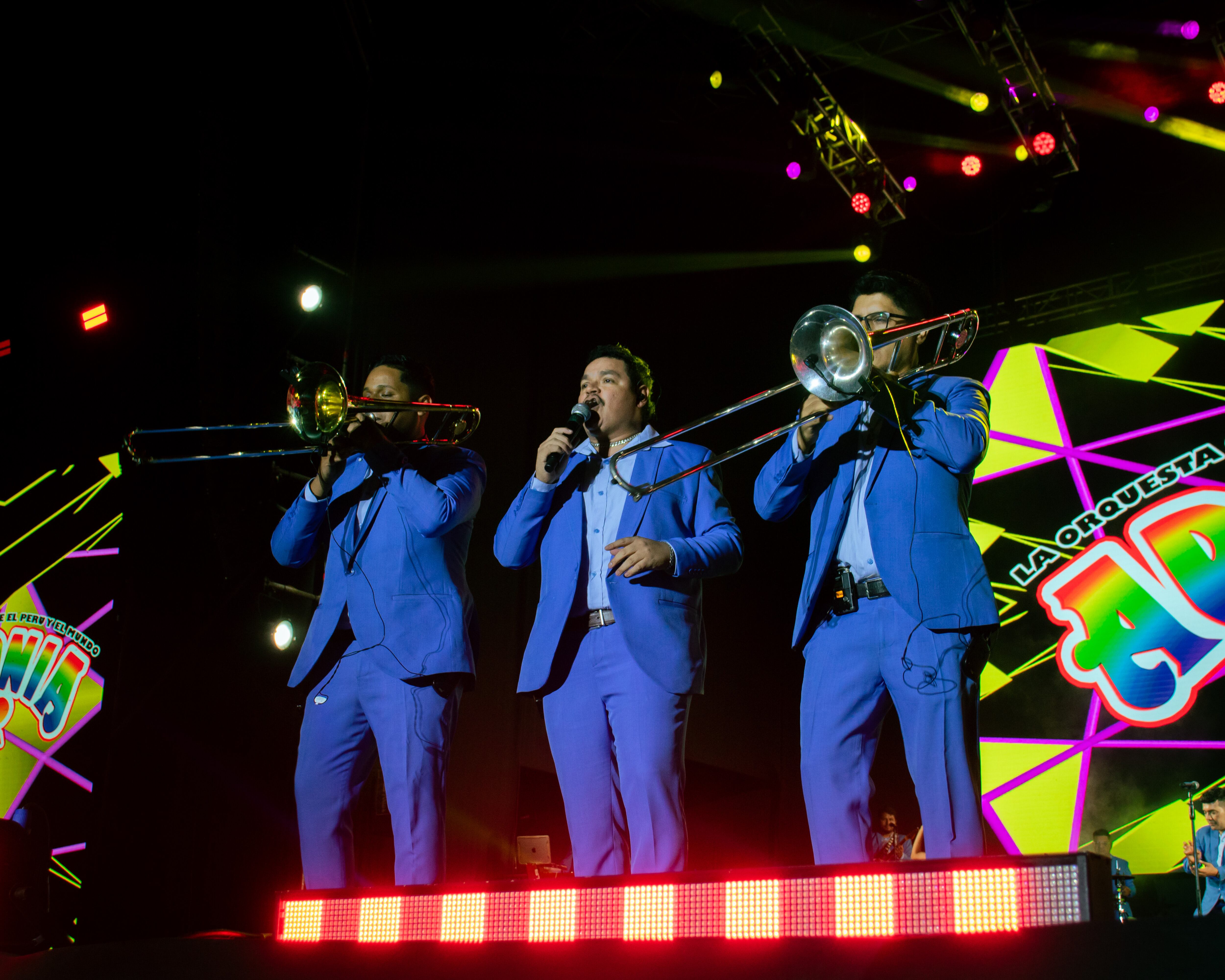 La noche inició con la presentación de La Única Tropical, que encendió el ambiente con sus temas más populares. Pasada la medianoche, Armonía 10 subió al escenario y comenzó su esperado repertorio con clásicos como “El cervecero”, “Por culpa de tu amor”, “Me emborracho por tu amor” y “Lagrimitay, cervecitay”, coreados por un público entregado.