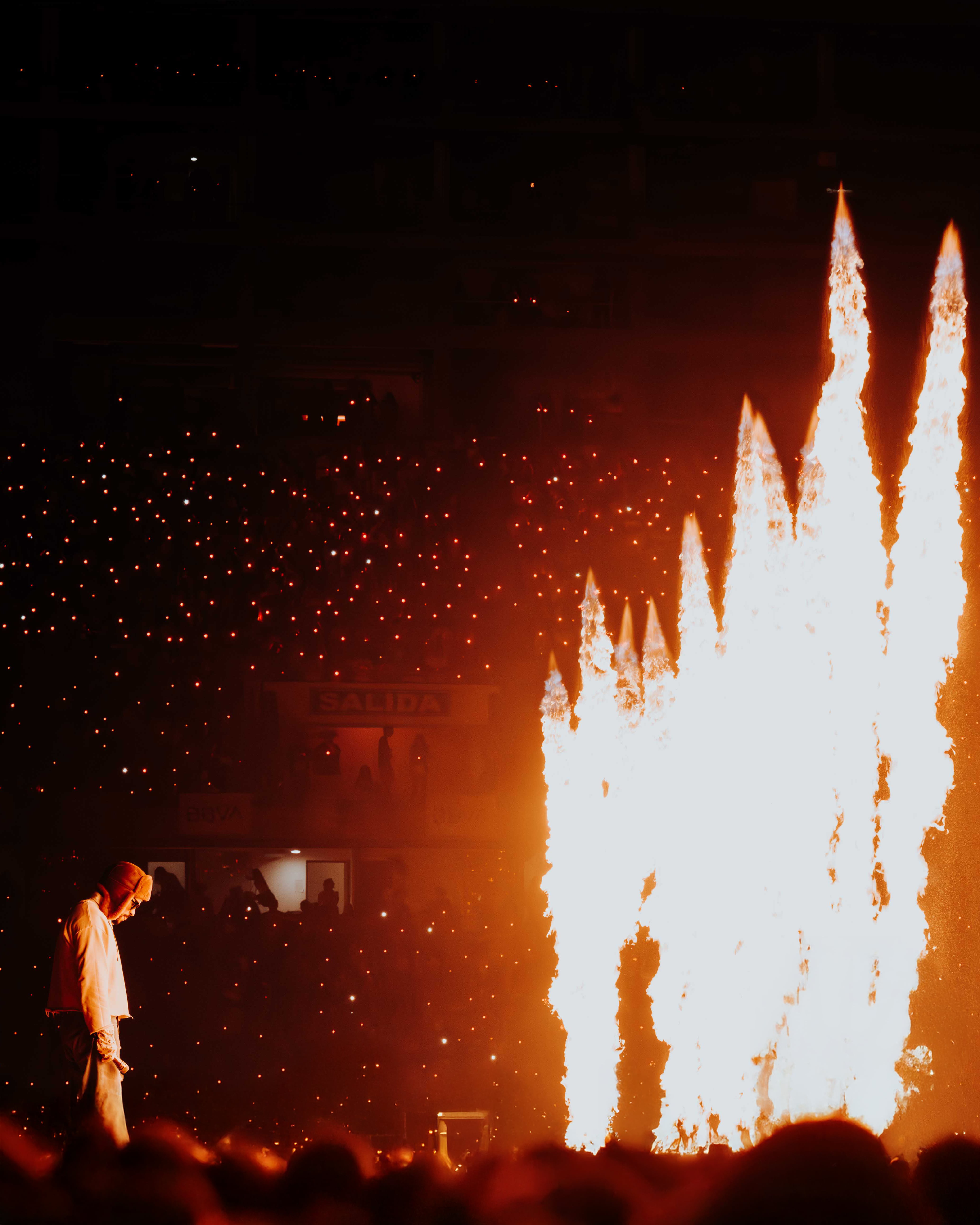 Visualmente, esta sección se apoyó en una puesta sobria y emotiva, donde la música fue el eje central. El ‘Conejo Malo’, con un vestuario que combinaba lo clásico y lo contemporáneo, se mostró contenido, reflexivo, dejando que las canciones respiraran. Fue un inicio arriesgado para un artista de estadios, pero también una declaración de madurez artística.