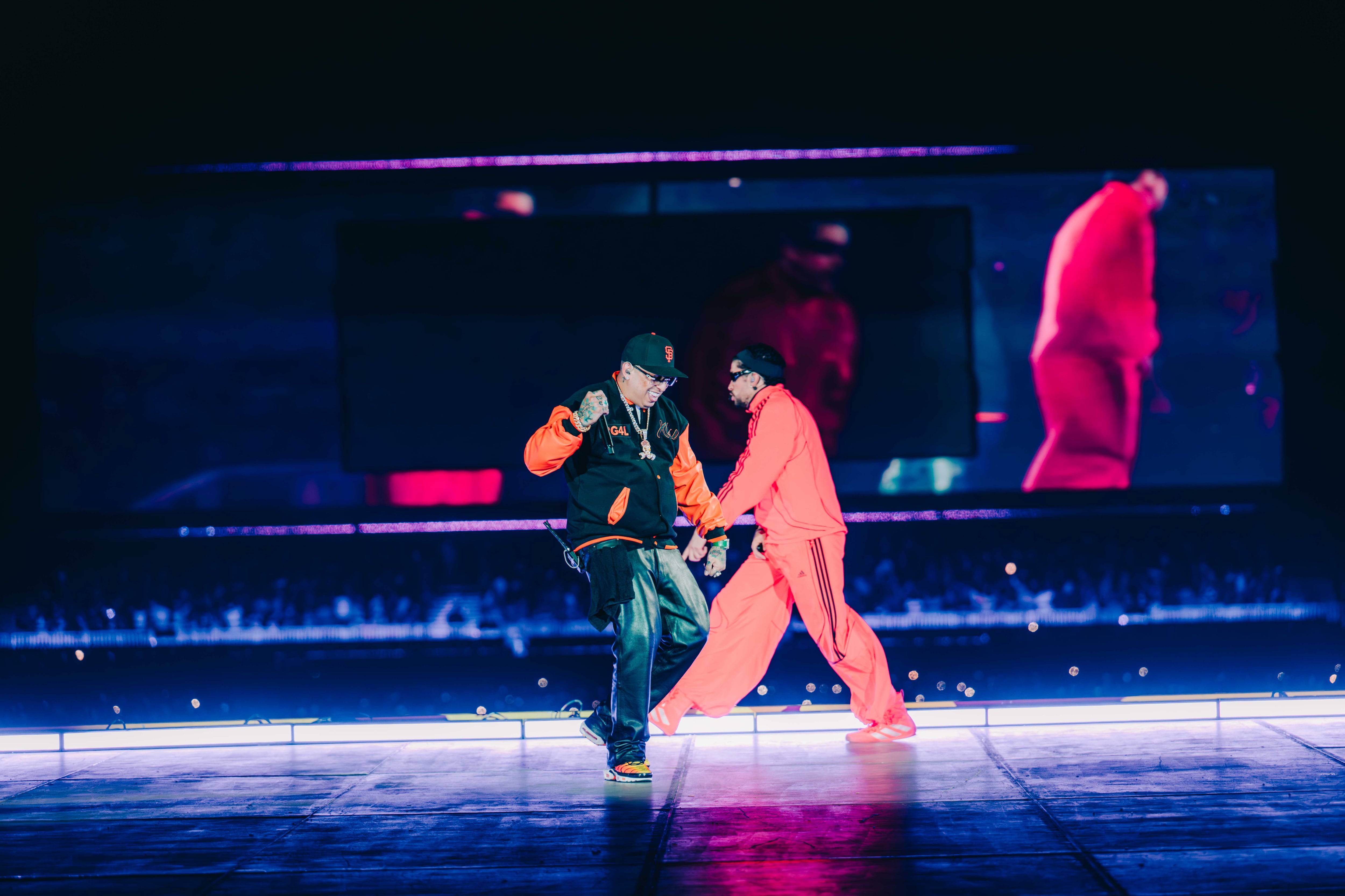 El clímax del espectáculo llegó con la aparición de Ñengo Flow como invitado especial. El reggaetonero puertorriqueño encendió aún más los ánimos y reforzó ese puente entre el reggaetón de la vieja escuela y la evolución sonora que Bad Bunny ha sabido capitalizar. Fue un momento de comunión total, donde el público respondió con saltos, gritos y coros que retumbaron en todo el recinto.