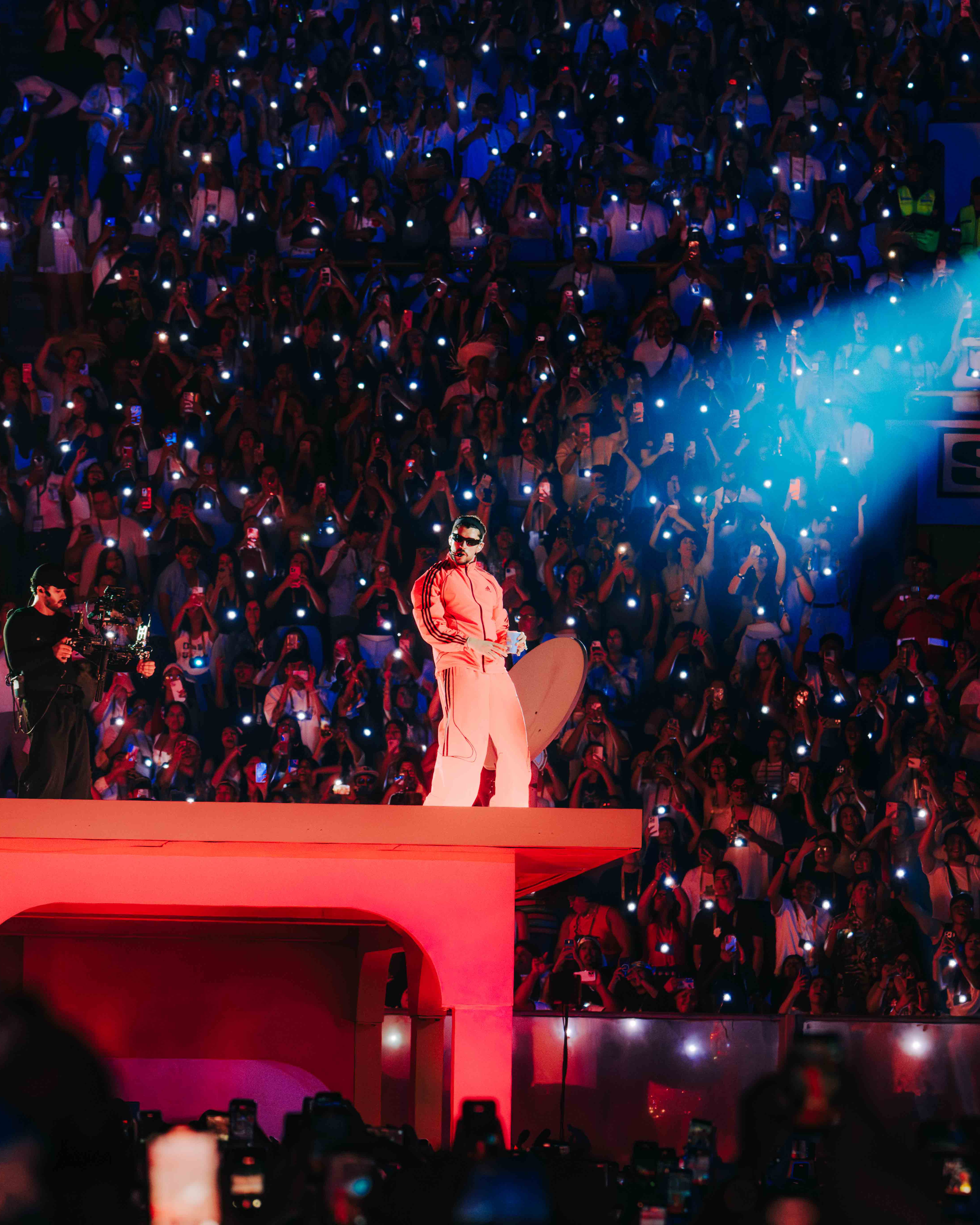 Cuando Bad Bunny finalmente apareció en escena, el Estadio Nacional estalló. Sin excesos innecesarios, pero con una puesta en escena cuidada al detalle, el artista fue construyendo un viaje musical que transitó por distintas etapas de su carrera. Cada canción parecía dialogar con la siguiente, y entre ellas se colaban silencios, gestos y visuales que reforzaban el concepto del tour: recordar, mirar atrás y resignificar el pasado.