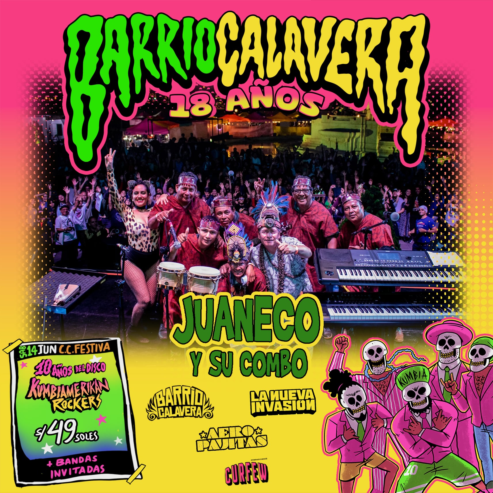 Como se ha anunciado, uno de los grandes invitados estelares que tendrá Barrio Calavera serán los míticos Juaneco y su Combo. Con más de 60 años de trayectoria, serán los encargados de colocar esa cuota de cumbia amazónica y clásica que siempre es necesaria para un evento. Aprovecharán para cantar clásicos como ‘Elsa, Elsa’, ‘Mujer Hilandera’, ‘Ya se ha muerto mi Abuelo’ y muchos más.