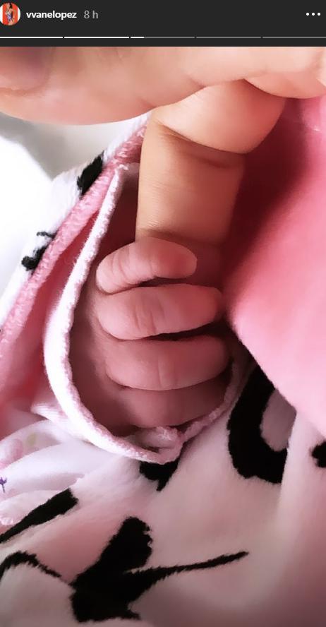 En otra de las fotografías, Vanessa López publicó una instantánea en la que se puede ver la manito de su bebé cogiendo uno de sus dedos.