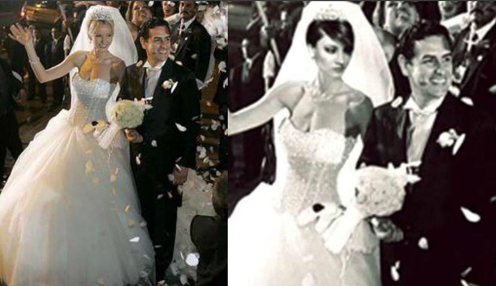 Cuando la Doctora Polo le pide que muestre las pruebas de los fallidos compromisos de su ‘esposa’, una de las fotografías no pasa desapercibida ya que corresponde a la boda de Juan Diego Flórez con su esposa Julia Trappe.