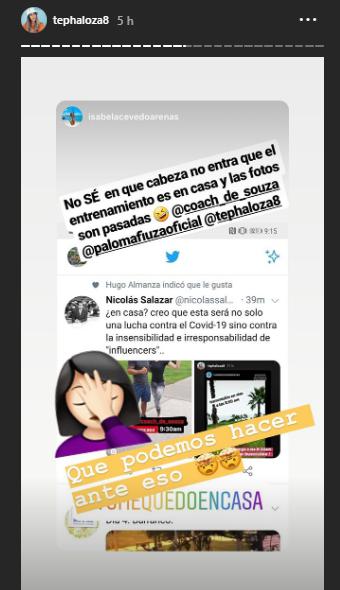 Los cuestionamientos surgieron porque los seguidores de Tepha Loza asumieron que la modelo había salido de su casa y que no había acatado con el aislamiento social, medida que impuso el Gobierno para frenar la propagación del COVID-19 en todo el país.