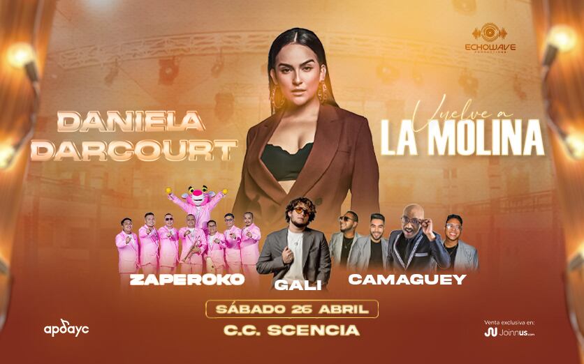 Considerada como una de las voces femeninas más importantes que tiene Perú en la actualidad, Daniela Darcourt vuelve al distrito de La Molina para presentar un show único, renovado y cargado de éxitos. La fecha será este sábado 26 de abril en el C.C. Scencia de La Molina.