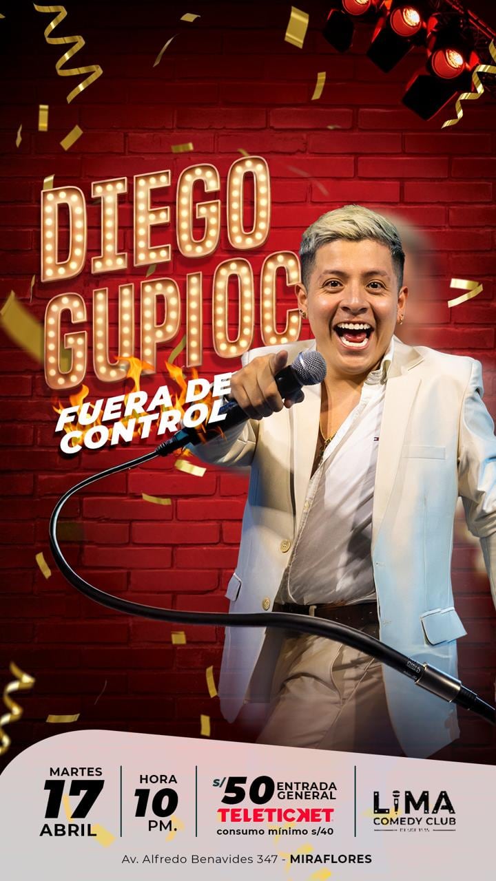 El comediante peruano Diego Gupioc presentará su espectáculo Fuera de control este 17 de abril en el Lima Comedy Club, como parte de su proceso creativo dentro de la escena local de comedia.
