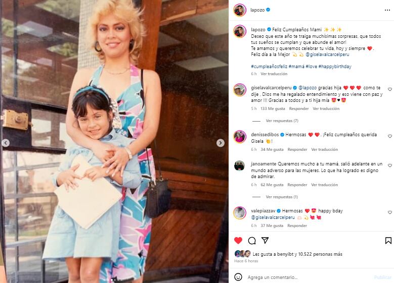 A través de redes sociales, la conductora de TV saludó a Gisela Valcárcel y compartió inéditas fotografías de su infancia al lado de su progenitora.