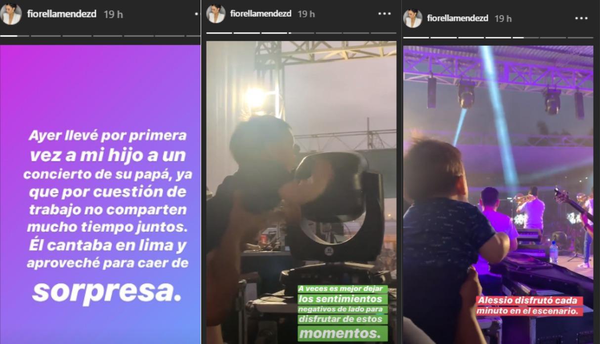 “Ayer llevé por primera vez a mi hijo a un concierto de su papá, ya que por cuestión de trabajo no comparten mucho tiempo juntos. Él cantaba en Lima y aproveché para caer de sorpresa”, escribió en sus historias.