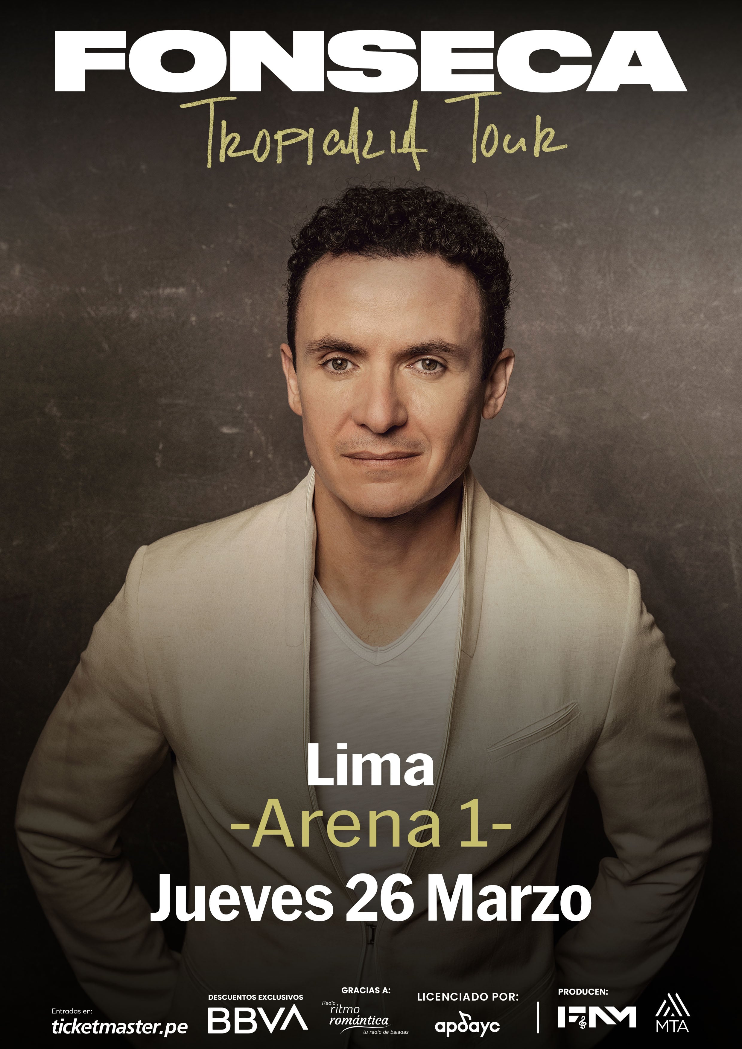 Lima vivirá una noche llena de ritmo y emoción con el regreso del cantante colombiano Fonseca, quien presentará su Tropicalia Tour 2026 el jueves 26 de marzo en Arena 1. El espectáculo, que viene batiendo récords en Estados Unidos, Europa y América Latina, promete ser el concierto más alegre del verano.