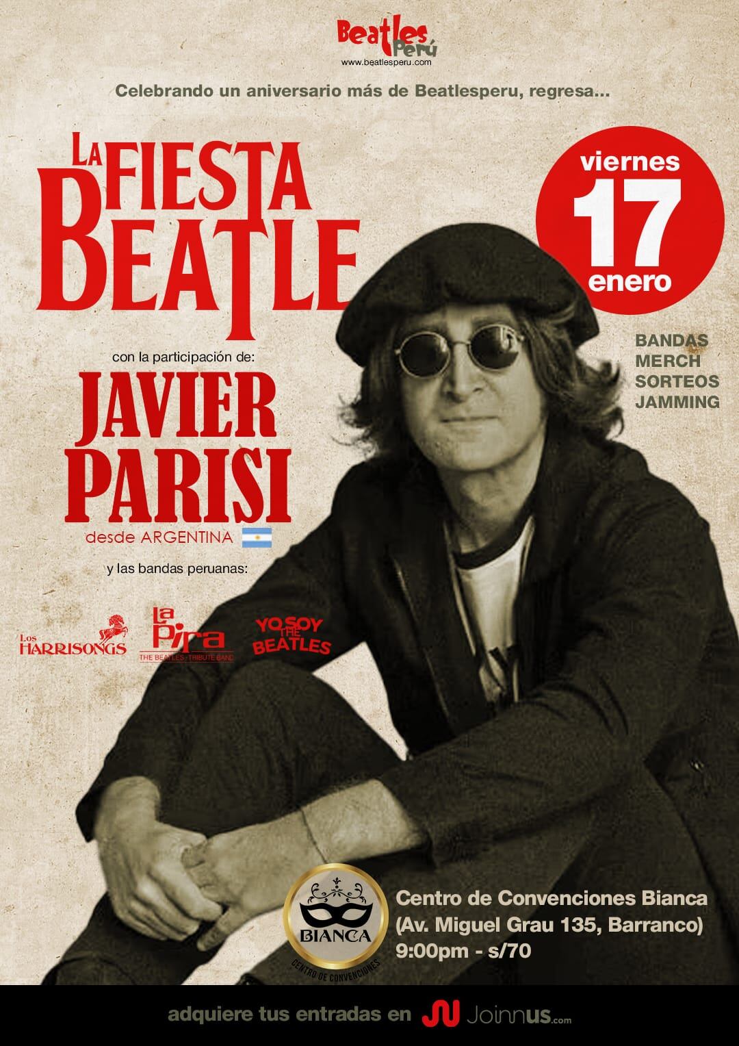 Beatles Perú, la comunidad de seguidores más grande de The Beatles en Latinoamérica, celebra 19 años de historia. Para conmemorar este aniversario, el viernes 17 de enero se llevará a cabo la esperada Fiesta Beatle, el evento más emblemático de la comunidad. Esta edición es muy especial. Se realizará en el Centro de Convenciones Bianca de Barranco y contará con la presencia de Javier Parisi, reconocido mundialmente como el mejor tributo a John Lennon.