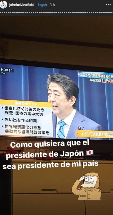 “Cómo quisiera que el presidente de Japón sea el presidente de mi país”, escribió John Kelvin junto a la instantánea que compartió hace unas horas en sus redes al parecer ya desde el país de Japón.