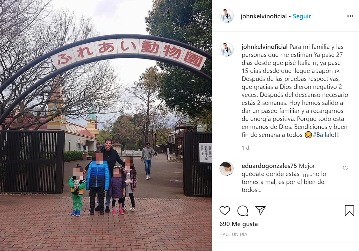 Tras haber logrado salir de Italia en medio de la complicada situación que se vive por la pandemia del coronavirus, John Kelvin se encuentra en Japón con su familia y sorprendió en las redes sociales al mostrarse de paseo por dicho país.