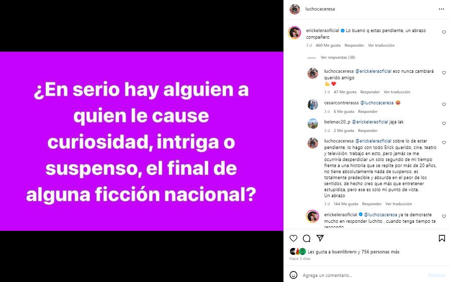 “¿En serio hay alguien a quien le cause curiosidad, intriga o suspenso, el final de alguna ficción nacional?”, escribió Lucho Cáceres.