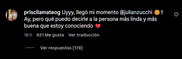 En la misma publicación de Julián, apareció el comentario de su actual pareja Priscila Mateo, reconociendo que “es la persona más linda”.