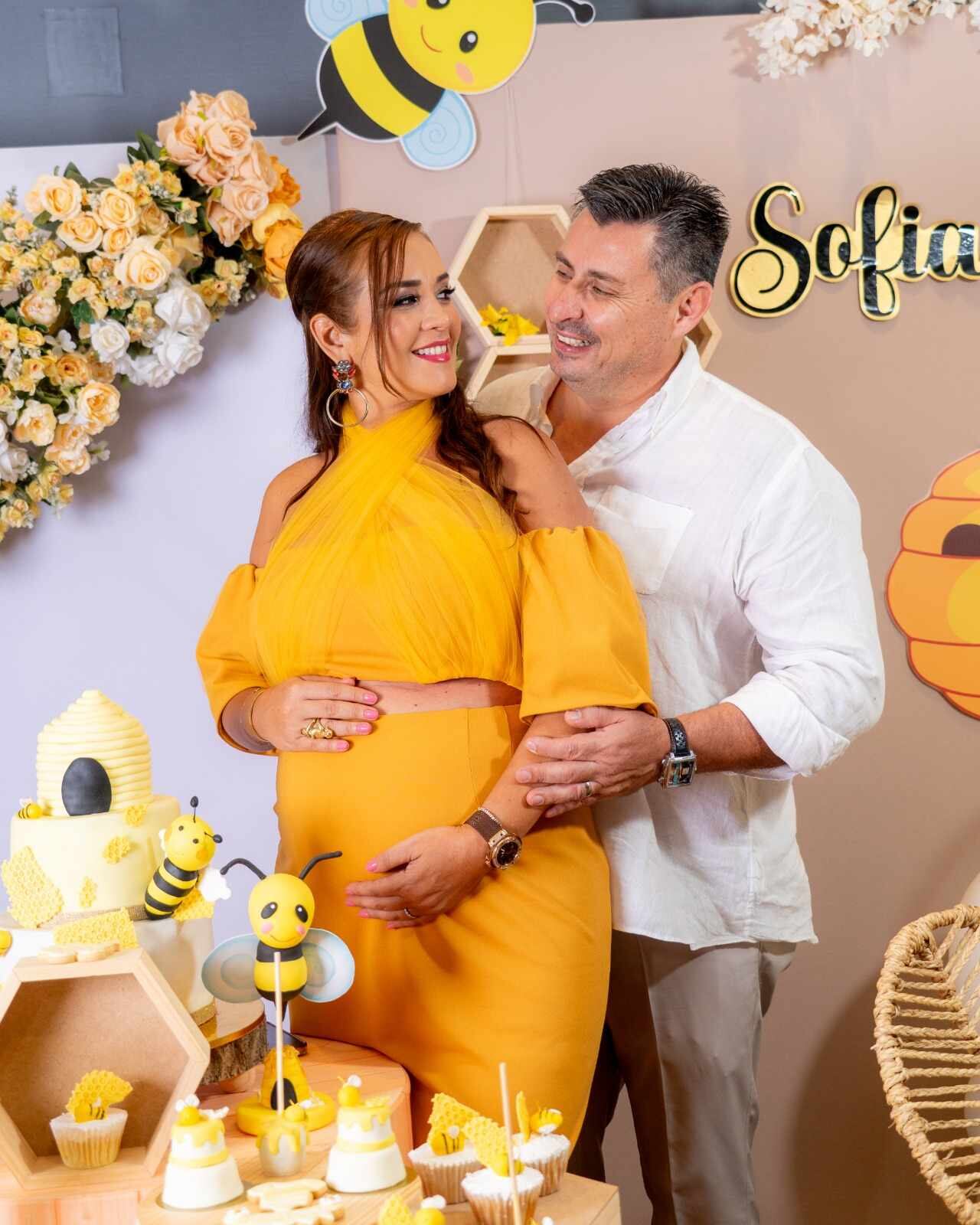 Al evento acudieron sus grandes amigas Laura Huarcayo, Silvia Cornejo, Fiorella Florez, Olga Zumarán, familiares y entorno cercano. La temática de esta celebración fue de abejita. Para ello, Marina Mora lució un hermosos vestido mostaza, que lucía muy bien con su ya pronunciada barriguita.