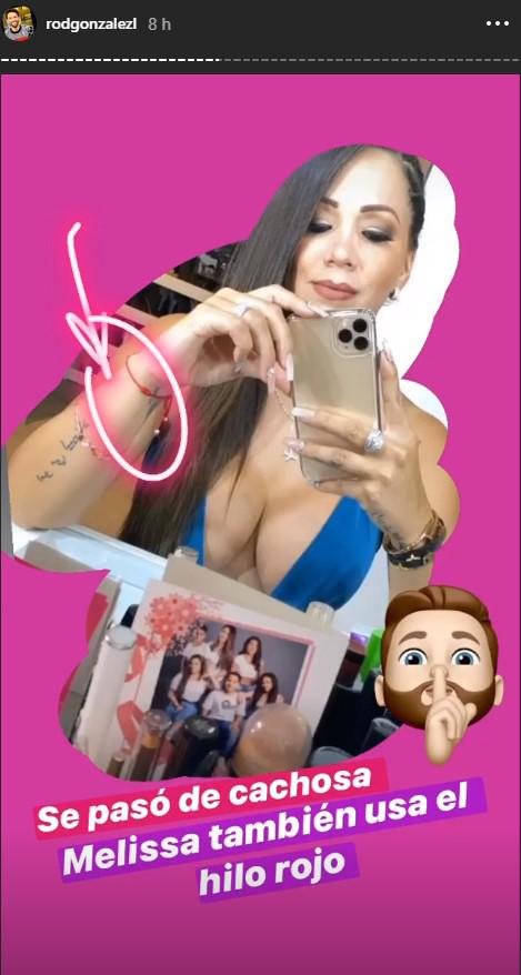 “Se pasó de cachosa. Melissa también usa el hilo rojo”, escribió el popular ‘Peluchín’ a través de sus historias de Instagram haciendo alusión al hilo rojo que en cierto momento se vio usar a Jefferson Farfán y Yahaira Plasencia.