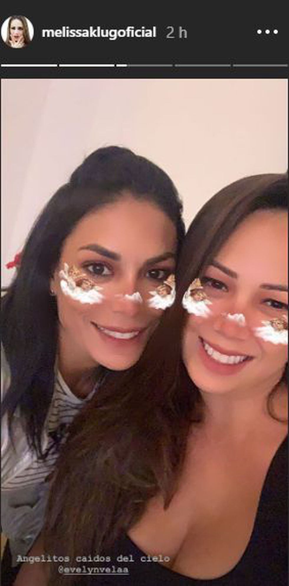 Inicialmente, Melissa Klug usó su cuenta de Instagram para compartir -a través de sus Stories- una fotografía justamente con su inseparable amiga. “Angelitos caídos del cielo”, colocó como pie de la imagen en la que aparece feliz y sonriente.