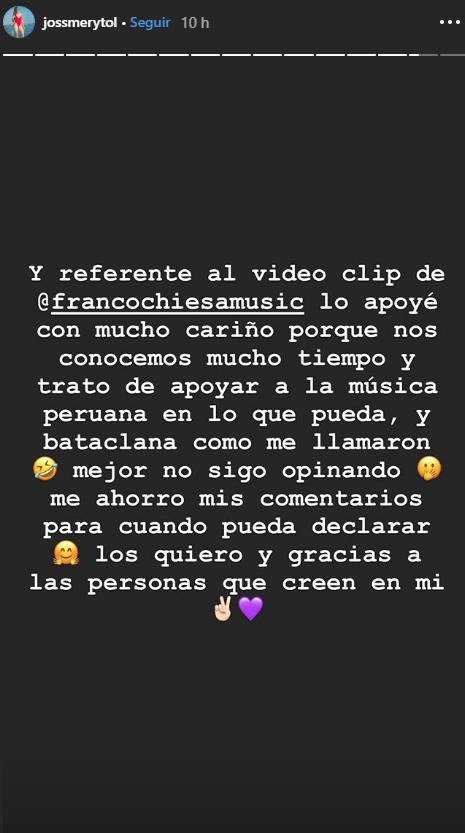 Finalmente, Jossmery Toledo se refirió al calificativo de “bataclana” que recibió de parte de Magaly Medina y no dudó en agradecer el apoyo de sus seguidores.