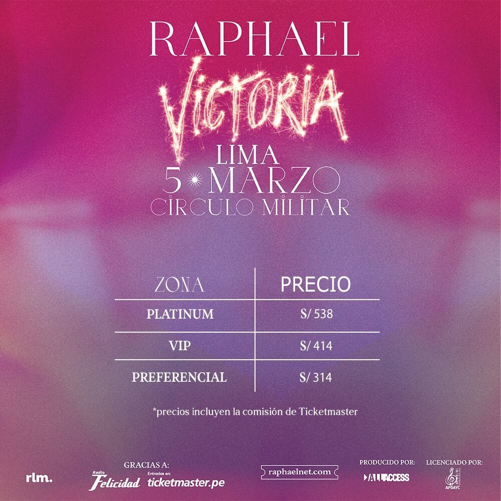Raphael regresa a los escenarios para presentar su flamante nuevo disco titulado ‘Victoria’, escrito y producido por Pablo López. La cita con sus fans peruanos es el 5 de marzo de 2024 y las entradas estarán a la venta desde el jueves 26 de octubre.