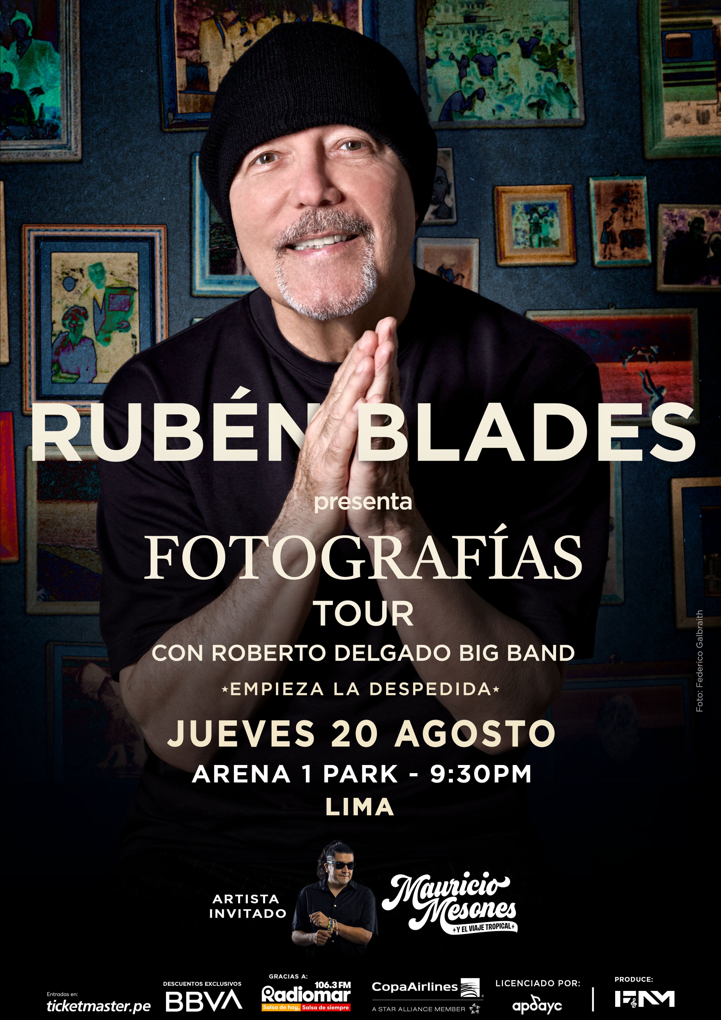 El reconocido cantautor panameño Rubén Blades regresará a Lima el 20 de agosto con su gira Fotografías Tour, en un concierto que marcará el inicio de su ciclo de despedida de las giras internacionales.