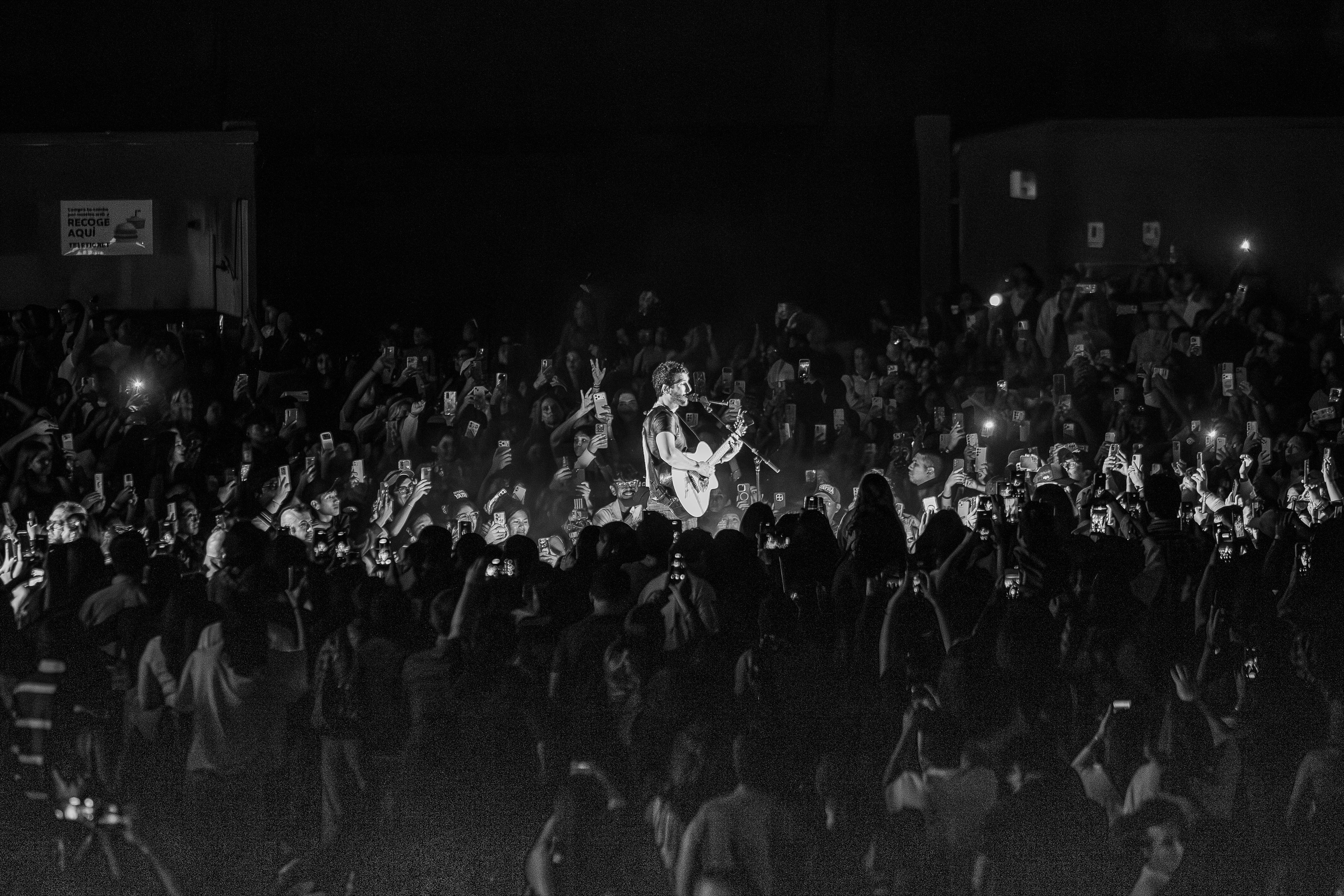 Uno de los pasajes más destacados de la noche ocurrió cuando el artista bajó del escenario y se internó entre el público para interpretar “Cristina” y “La Pelirroja”, en un gesto que intensificó la cercanía con sus seguidores.
