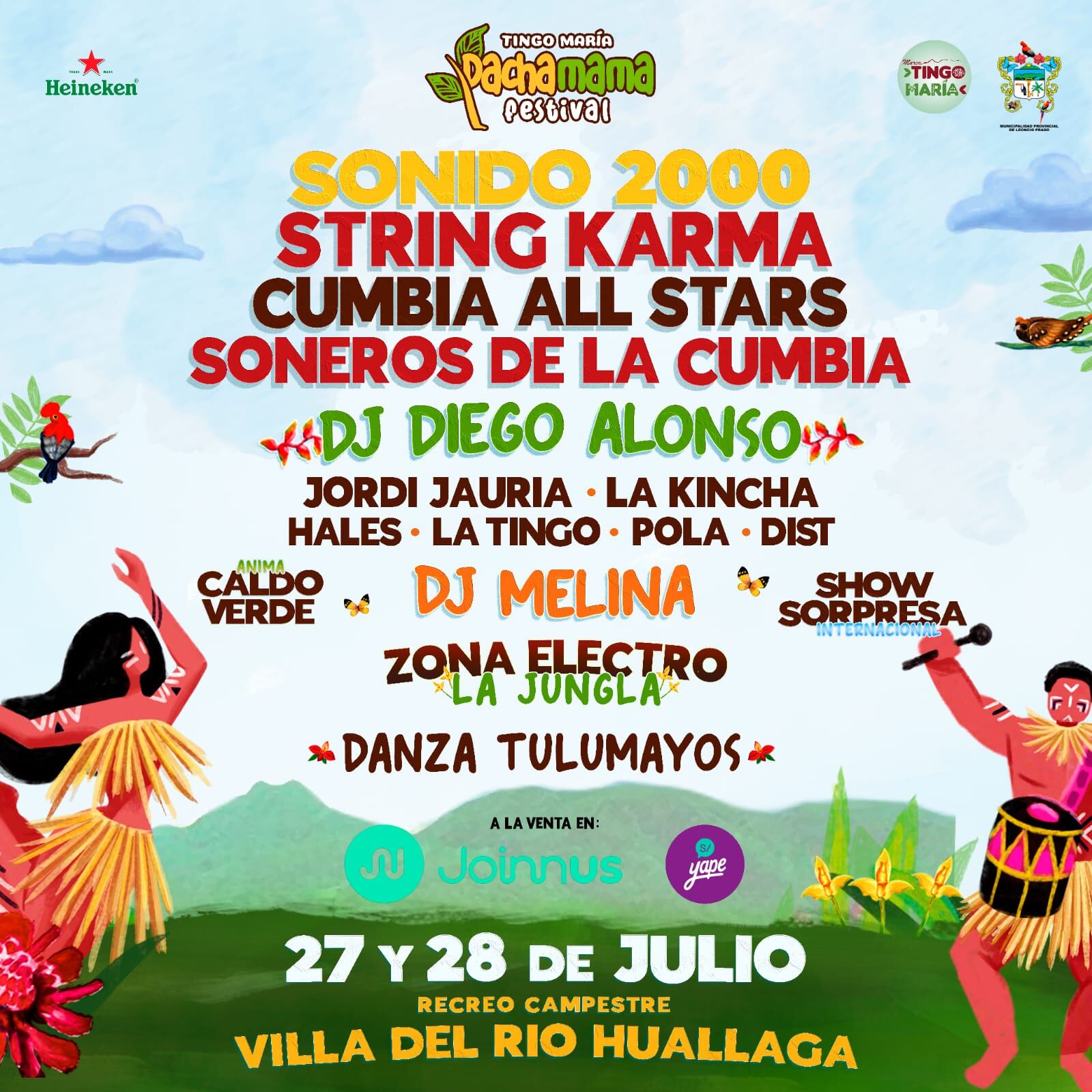Pachamama Fest, considerado como uno de los festivales más importantes de toda la Selva Central. Como es de costumbre, tendrá lugar en Fiestas Patrias, para ser exactos 27 y 28 de julio en el Recreo Campestre Villa del río Huallaga.