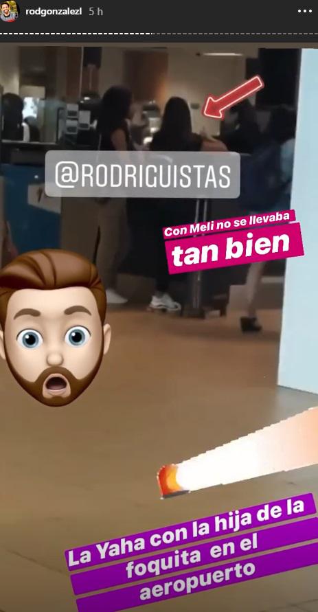 “Con Meli no se llevaba tan bien... La Yaha con la hija de la ‘Foquita’ en el aeropuerto”, comentó Rodrigo González junto a su publicación.