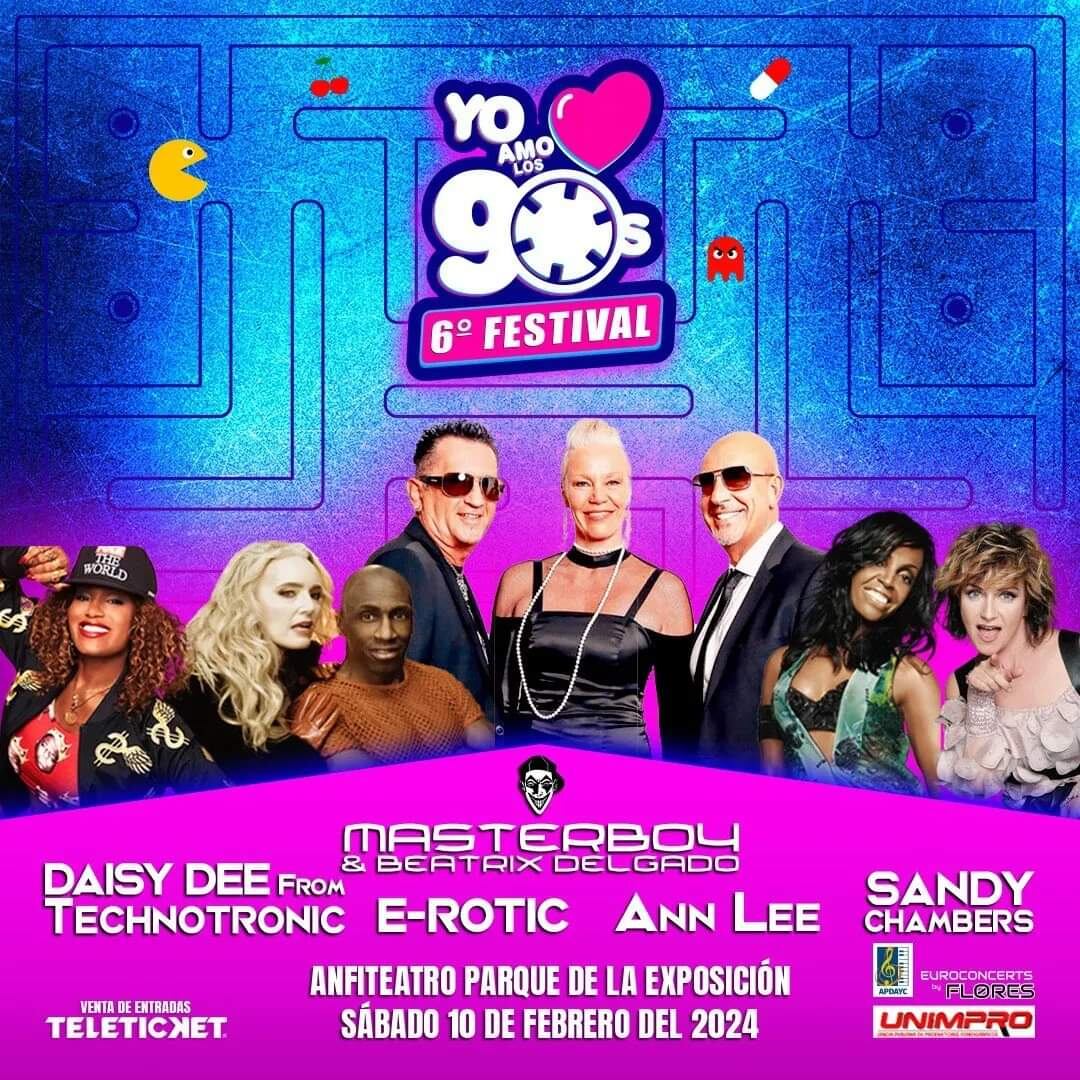 Ya faltan pocos días para que el público pueda disfrutar de la mejor música de la década de los noventas en el 6° Festival “Yo amos los 90s” el próximo sábado 10 de febrero del 2024 en el Anfiteatro del Parque de la Exposición y que tendrá a los máximos exponentes de la música de esa época.