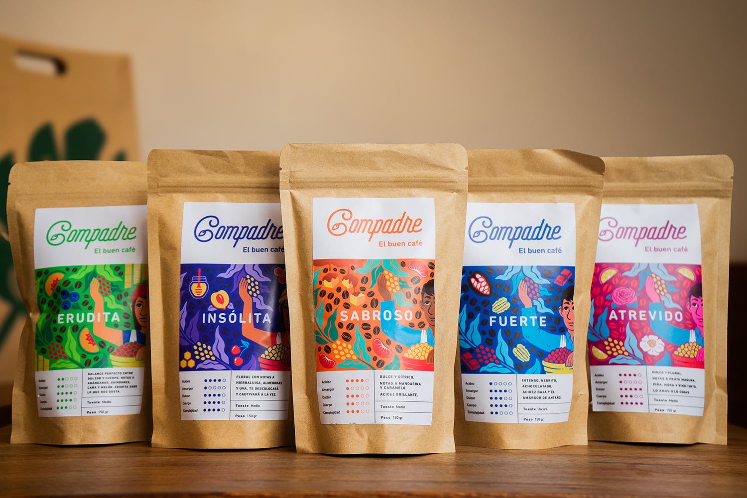 Actualmente, Café Compadre tiene 5 perfiles de café (productos empaquetados):