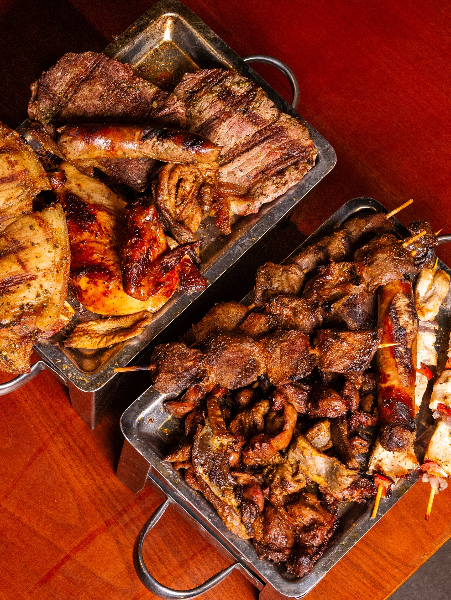 En su carta tienen anticuchos de res, brochetas de pollo, chinchulines, mollejitas, chorizo, costillas bbq, cerdo a la parrilla con salsa BBQ, cortes de carne como el baby beef, bife angosto, lomo fino ejecutivo, chuleta de lomo de cerdo y churrasco.