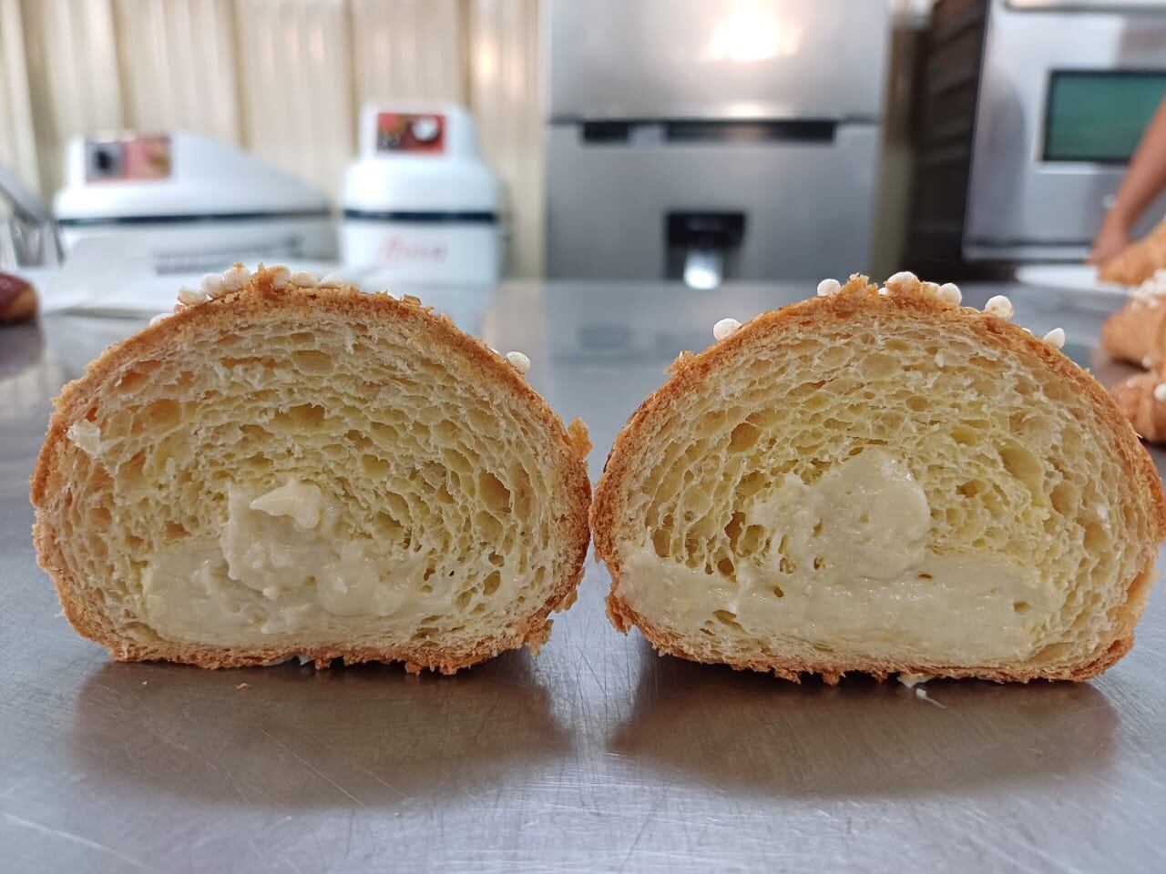 “Estamos innovando con dos presentaciones de croissant, uno a base de quinua y otro relleno de fresas. Es la propuesta que tenemos para poder acompañar a toda la familia en un compartir con amigos y familia. Queremos ofrecer algo único que despertará el deleite de los consumidores”, afirman Edmerson Anny Romero Torres y Lucio Huamán Gutiérrez, creadores de estas delicias.