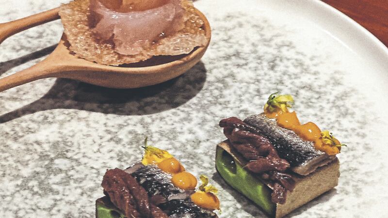 Su paso por Lima incluyó en el menú materia prima local que ha tratado con cariño, admiración y respeto, una experiencia que acerca un pedacito de Paco Roncero Restaurante a nuestro país, probamos clásicos de su cocina como el olivo milenario, dos estupendas preparaciones que tienen forma de aceituna, una verde y otra oscura, vueltas esferificación y con centro líquido que sabe a puro aceite. Continuaron sus platos leyenda del Casino de Madrid, un delicado filipino (dulce popular en España) de foie gras con chocolate blanco y cardamomo, un salmonete en escabeche de zanahoria con el correcto manejo de ácido, el perfecto matrimonio entre el boquerón y la anchoa, un bocado fuerte y de mucha personalidad, cerrando con el salmón marinado. Continua un homenaje a Madrid y sus bares, donde seguimos con snacks como el lemon pie de brandada de bacalao, con el punto perfecto de cítrico, la gallina en pepitoria (una forma tradicional española de cocinar las carnes, donde los jugos se enriquecen con yemas y almendras molidas), la oreja crujiente de cerdo con salsa brava, a la que la humedad le jugó una mala pasada con el crujiente y unas suaves y elegantes navajas al ajillo. El pan con mantequilla de aceite de oliva virgen extra es sublime, e invita a untar cada bocado una y otra vez. Los platos fuertes llegan con las Memorias vanguardistas del Casino, donde encontramos bocados refrescantes como la almendra, berenjena y rosáceas o los judiones con cigalas y americana de coco, que te preparan a seguir comiendo.