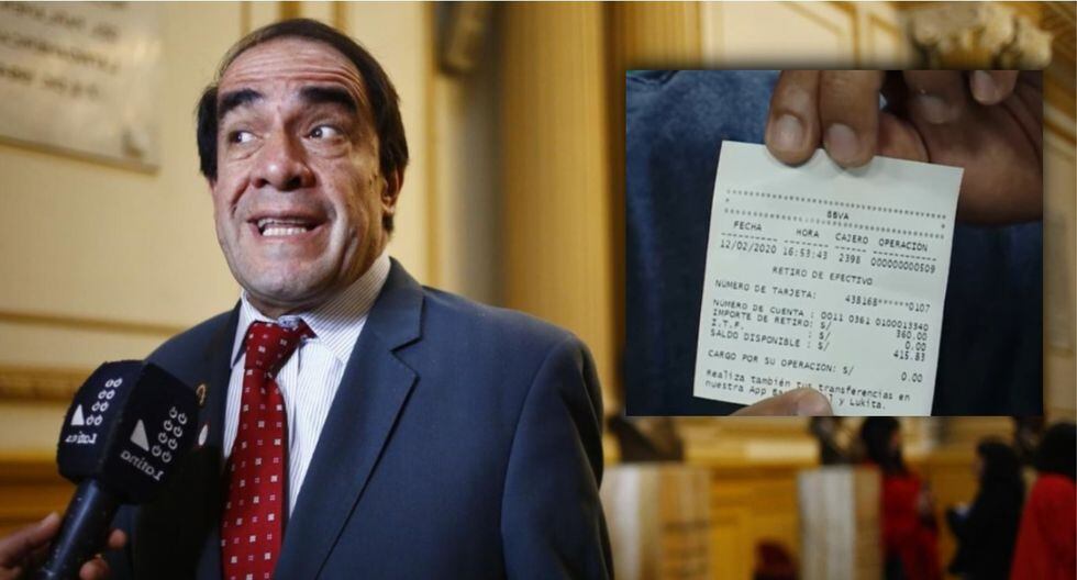 El militante de Acción Popular mostró dos voucher que muestra la cantidad de dinero que tuvo y tiene en la actualidad. El 5 de febrero su tarjeta guardaba 3,562 soles y el 12 de febrero solo 415 soles.