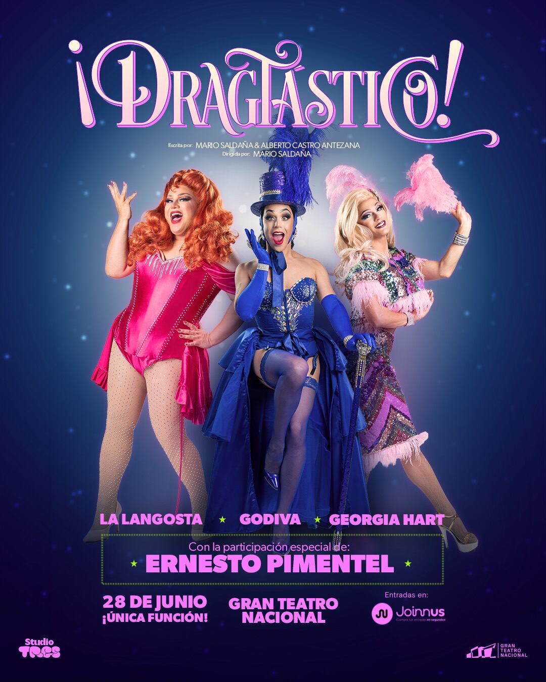 En el marco del Día Internacional del Orgullo se presentará por única fecha ¡Dragtástico!, escrita por Mario Saldaña y Alberto Castro Antezana y dirigida por Mario Saldaña, un espectáculo lleno de música, risas, baile y lágrimas que juntará por primera vez en el Gran Teatro Nacional a extraordinarias drag queens de Perú, GoDiva, La Langosta y Georgia Hart, junto con la participación especial de Ernesto Pimentel, quien regresa a las tablas.