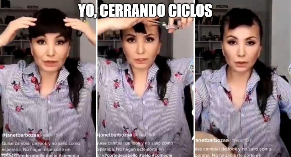 “Nos retocamos el cerquillo”, contó Janet Barboza en su segundo video. “Esto lo vi en un tutorial de YouTube y se veía tan fácil, pero a mí no me está saliendo muy bien que digamos, pero bueno vamos a nivelar”, dijo la exconductora antes de volverse a cortar el cabello.
