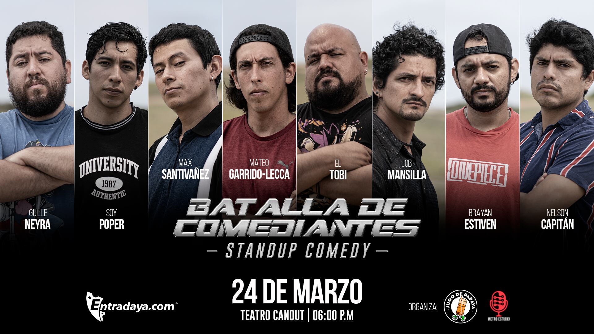 Para este evento se contará con la presencia de los tres más bravos -y divertidos- representantes del país: Mateo Garrido Lecca, El Tobi y Job Mansilla. Además, participan Brayan Estiven, Nelson Capitán, Max Santivañez, Soy Poper y Guille Neyra, por lo que las risas y la diversión están muy bien aseguradas.