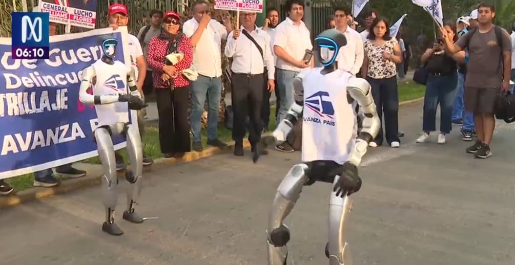 Dos robots fueron exhibidos por seguidores de Avanza País, generando curiosidad entre los asistentes que se congregaron en los exteriores del Centro de Convenciones de Lima.
