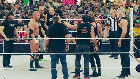 Tras la victoria de “El juego”, ambos grupos se colocaron en cada esquina del ring, dos grupos que marcaron un hito en la lucha libre y terminó de la mejor manera: con Triple H y Sting dándose las manos.